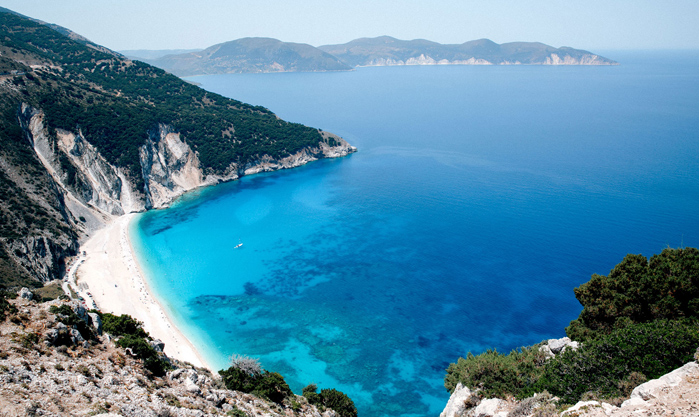 The Ionian island of Kefalonia is known for being one of the most beautiful islands in Greece ‐ its craggy coastlines and mountains, very green, and home to striking beaches such as the iconic Myrtos with its electric blue water.